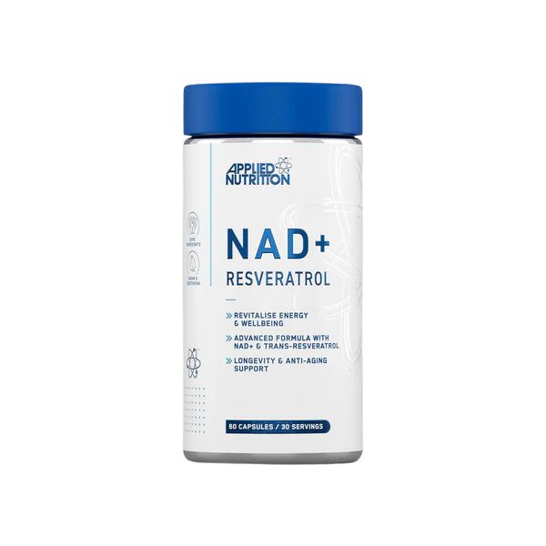 Ostanite zbrani, polni energije in sijoči z dopolnilom Applied Nutrition NAD+ Resveratrol. Ta napredna dnevna formula združuje NAD+, trans-resveratrol in vitamin C ter podpira energijo, imunski sistem in zdravo staranje – za dobro počutje od znotraj navzven. ✨